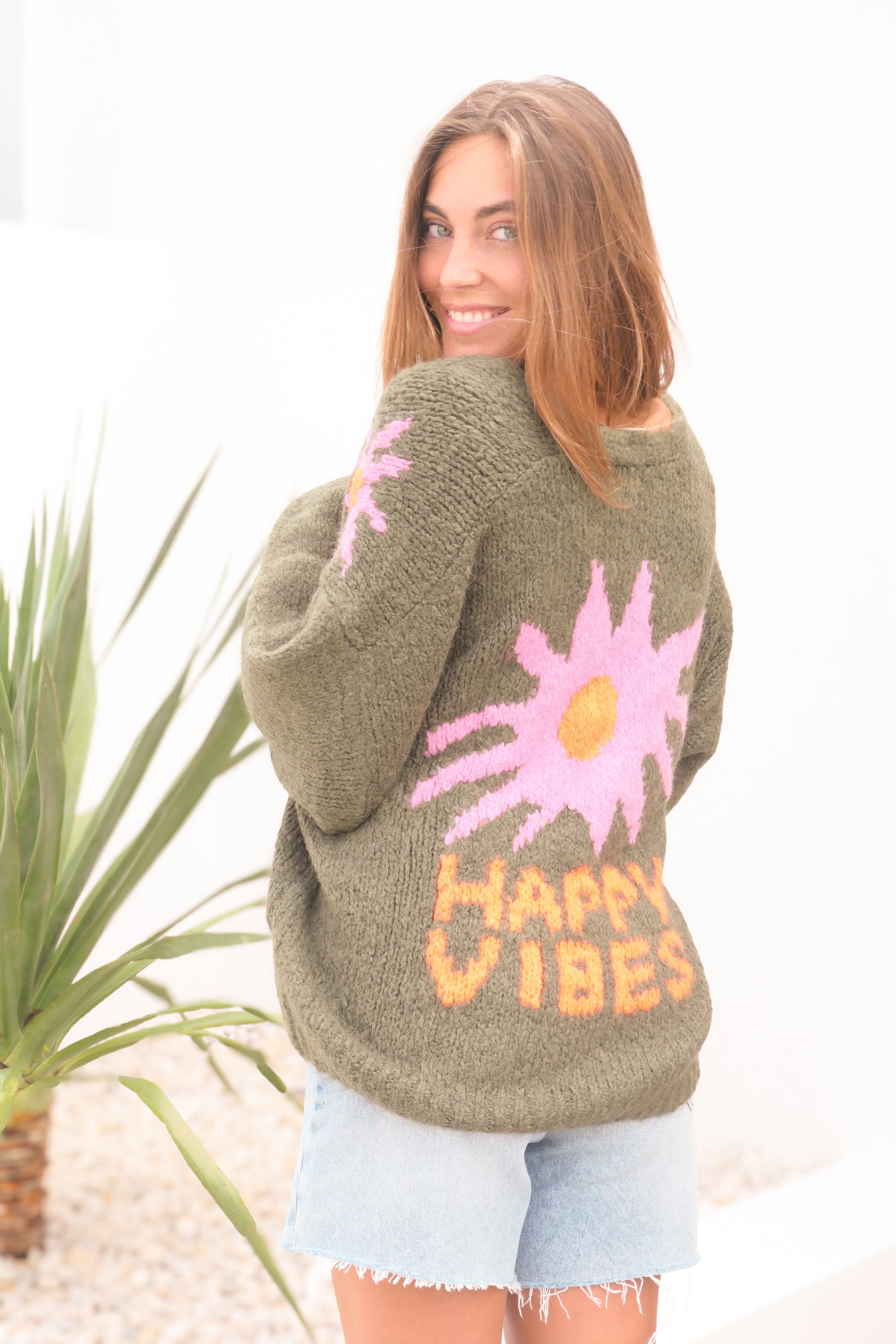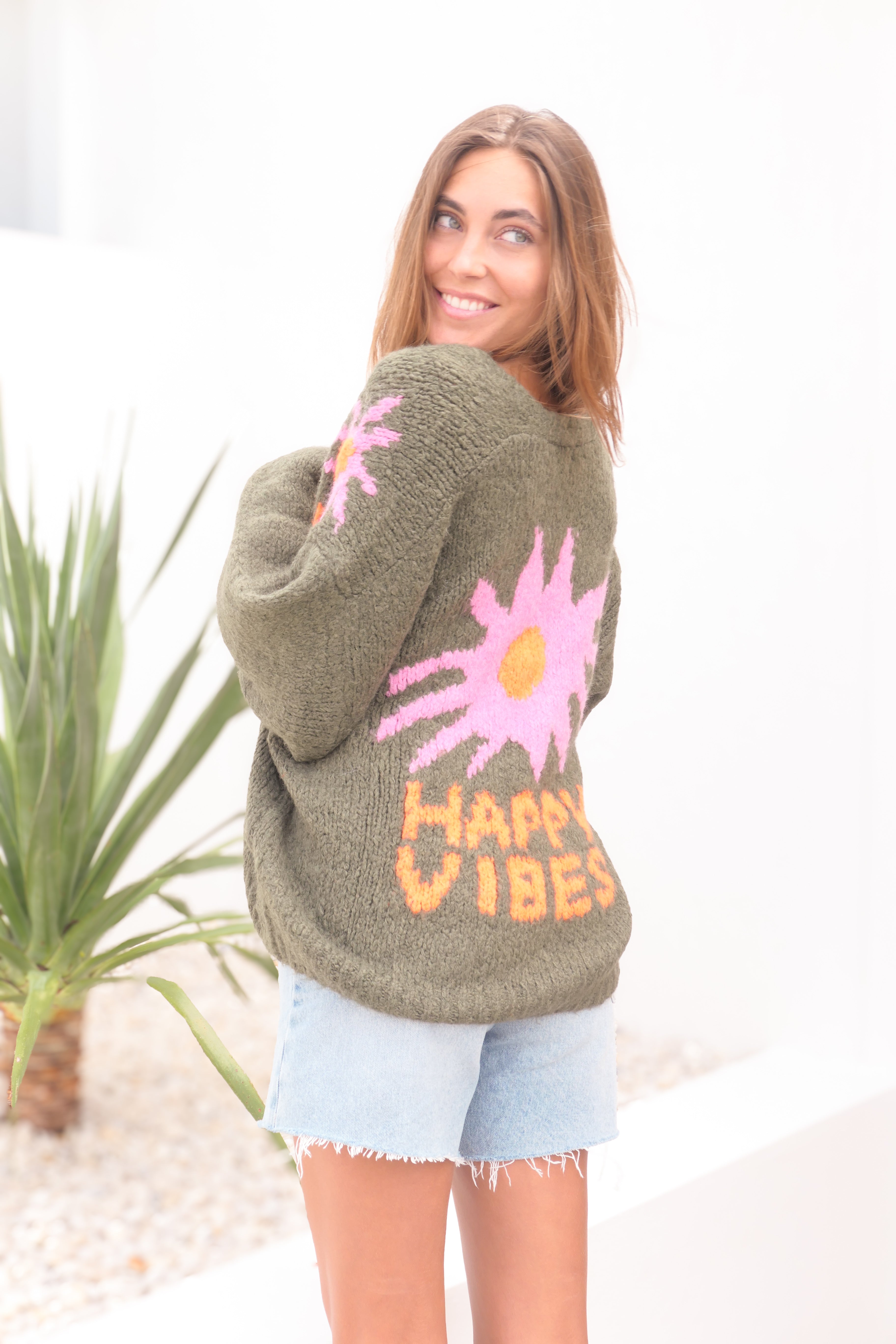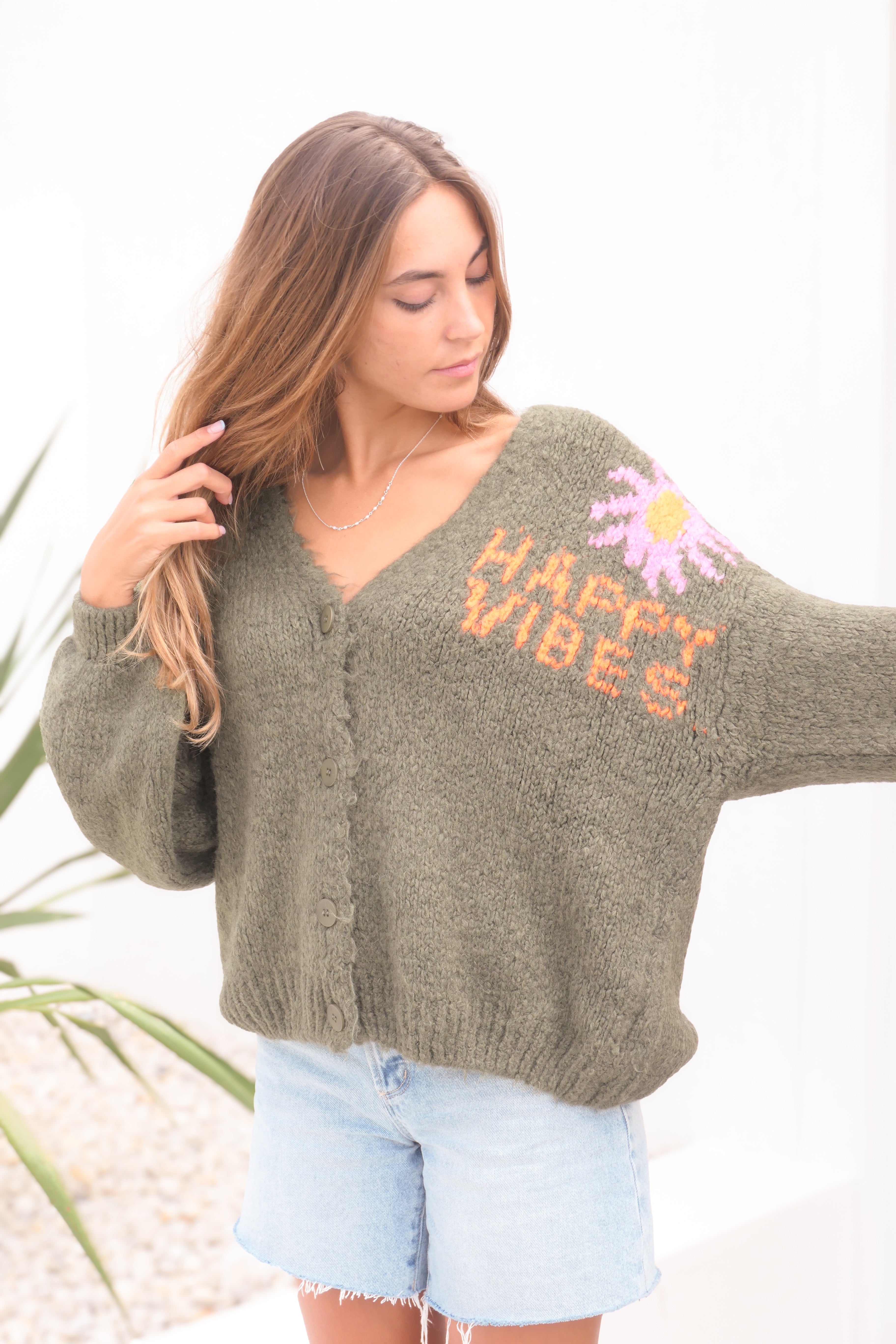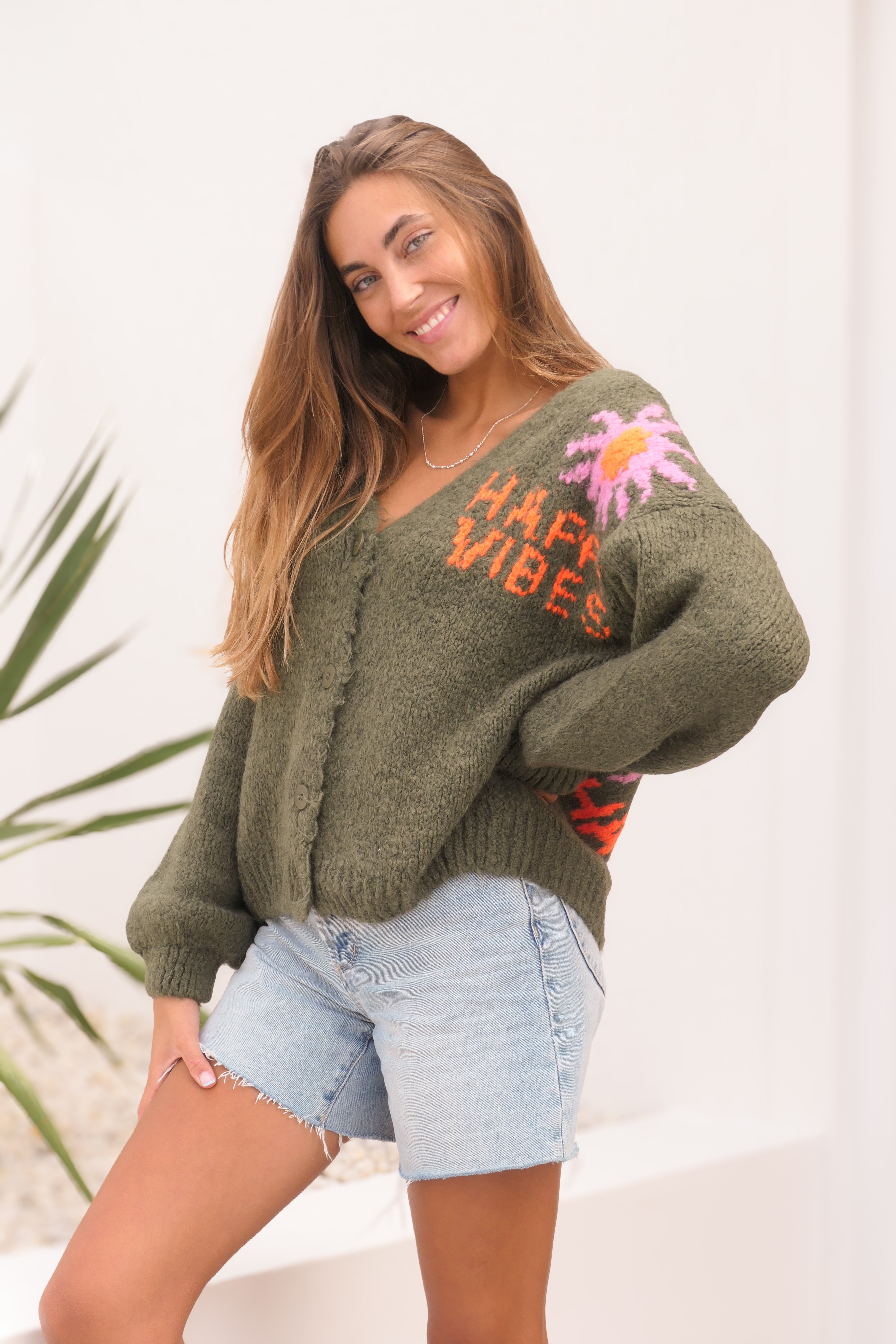 Happy Vibes Cardy - Olive - Made in Italy