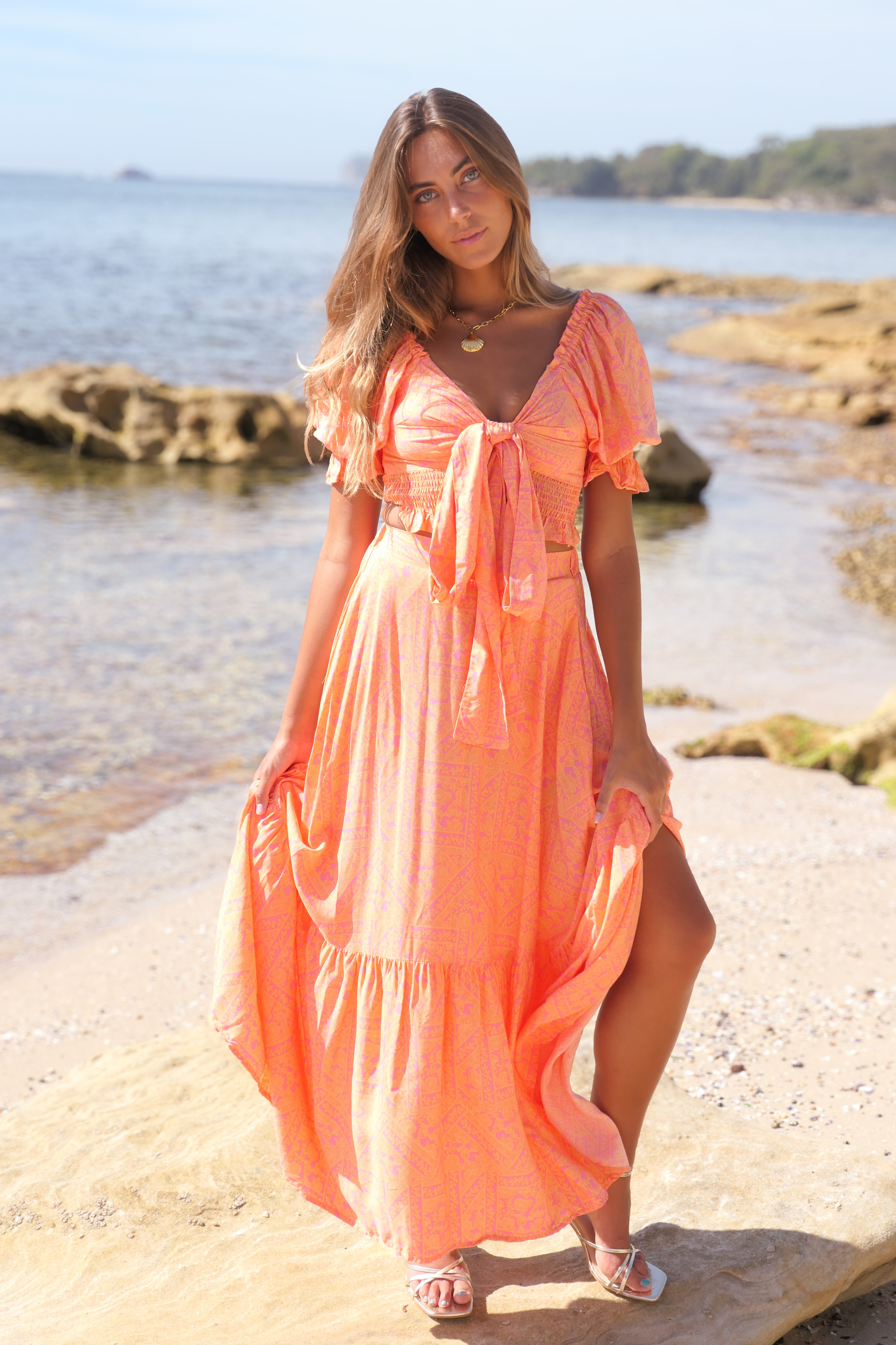 Valentina Set – Sunset Orange | Flattering Bohemian Chic Two-Piece Outfit
