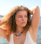 Le Soleil Bleu Halskette – Einzigartiger Stoff und goldene Charms